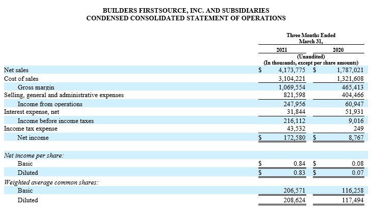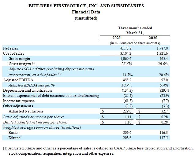 Builders Firstsource Reports Record First Quarter 2021 Results Builders Firstsource Inc